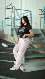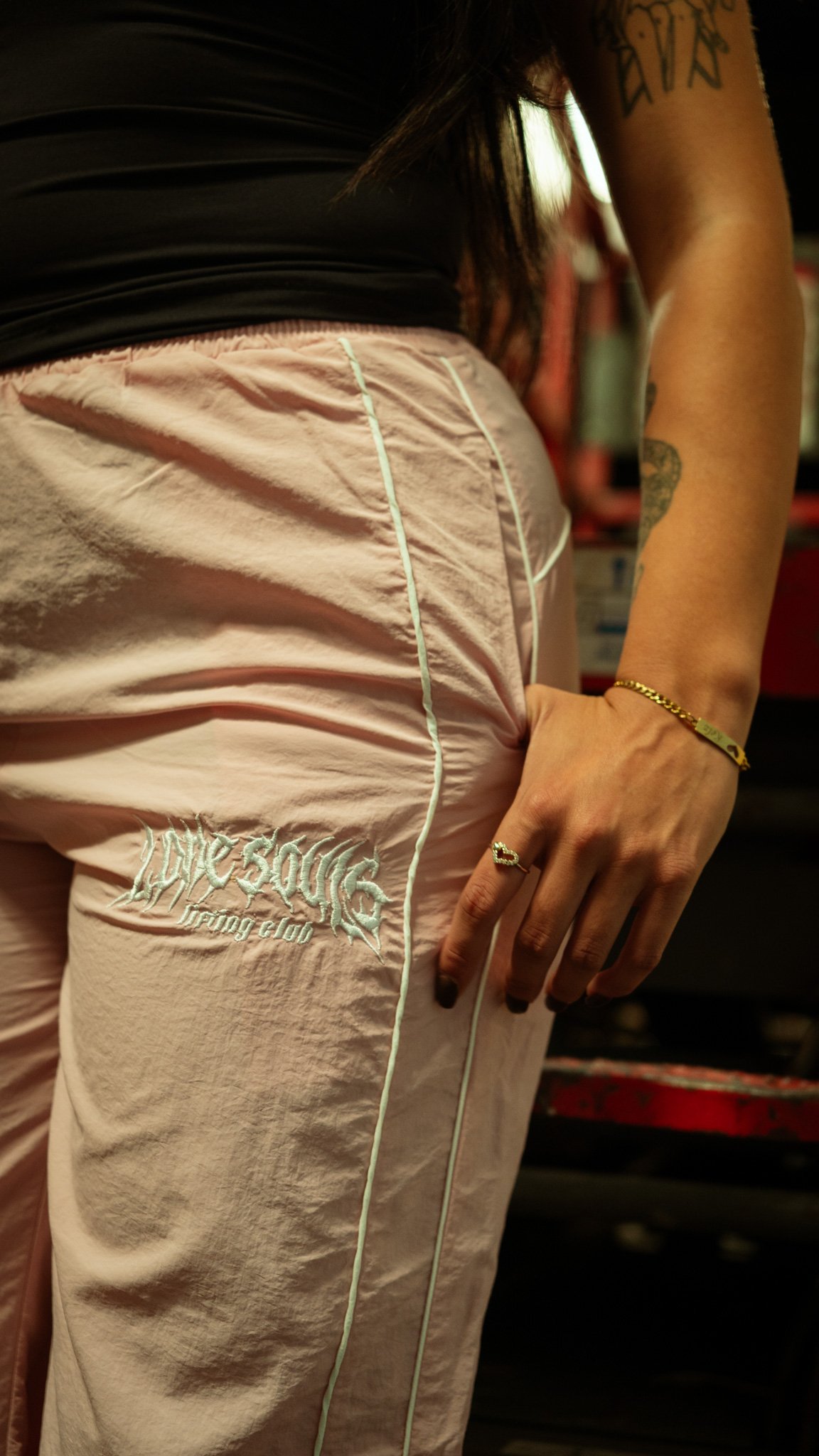 These are our women’s track pants with adjustable bottoms. These are perfect for the gym and for everyday wear! True to size fit.